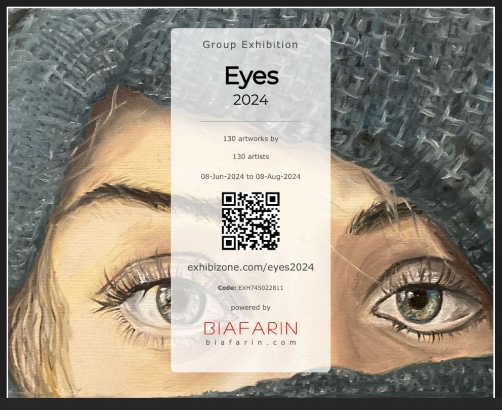 Exceptional artworks from brilliant international artists are now on sale at Eyes - 2024 online exhibition, organized by Exhibizone, powered by Biafarin (Canada). My artwork as follows at the exhibition.